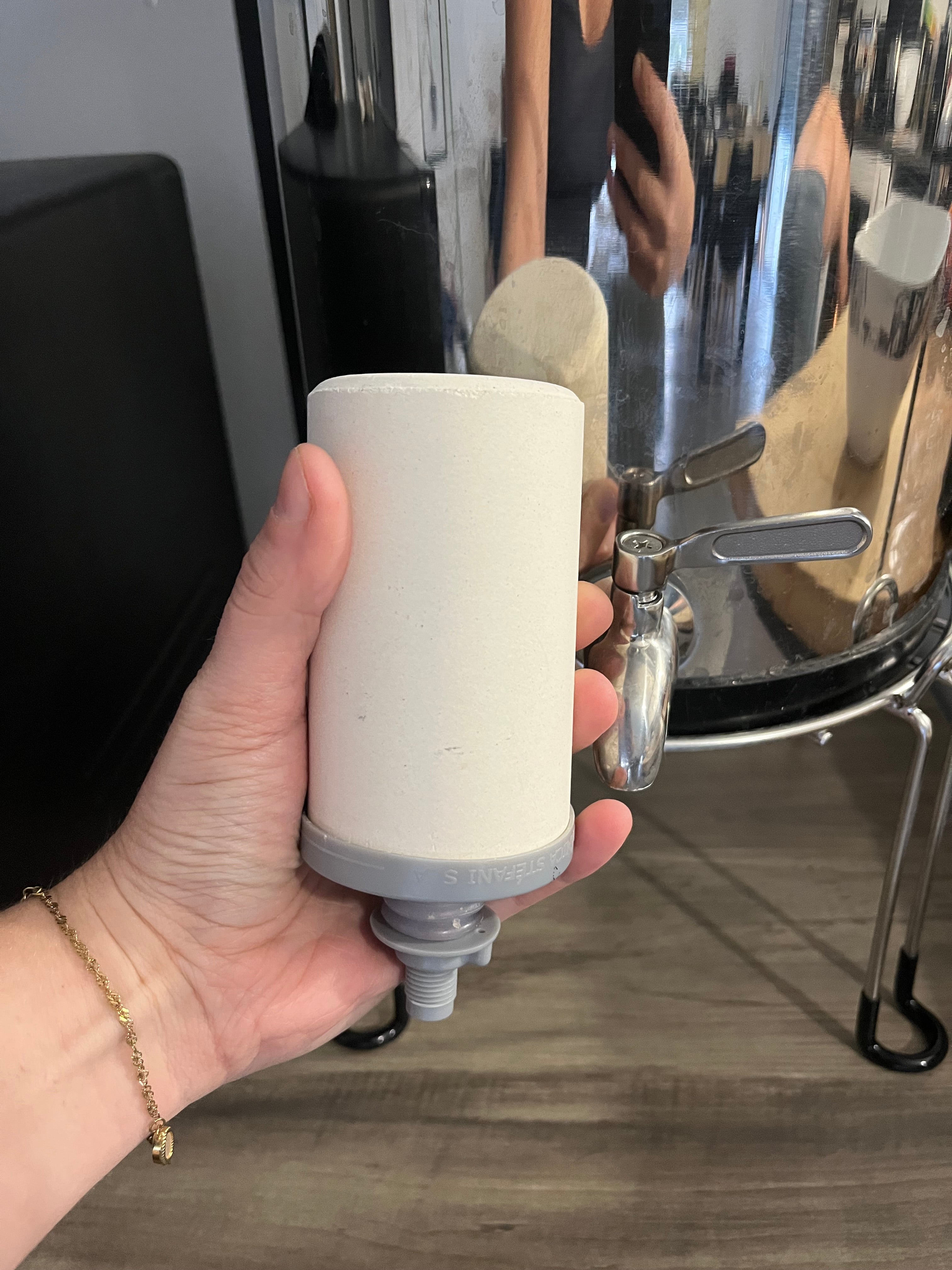 La cartouche Stéfani utilise une filtration naturelle par gravité sans électricité, basée sur une céramique microporeuse et du charbon actif, alors que la plupart des filtres classiques fonctionnent sous pression et contiennent souvent des résines synthétiques. Elle est donc plus écologique et douce avec les minéraux naturels de l’eau.